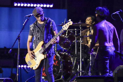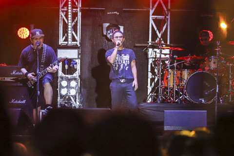 Jamrud dan Slank tampil di The 90's Festival hari pertama yang digelar di JIExpo Kemayoran, Jakarta, Sabtu (10/8).