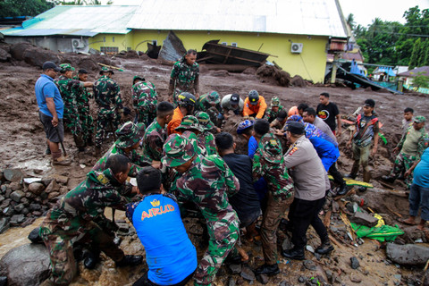 Sampai saat ini, tim SAR gabungan dibantu warga masih melakukan pencarian korban lainnya dengan menggali lumpur dan material batu.