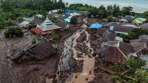 Rumah warga yang rusak akibat banjir bandang di Kelurahan Rua, Kota Ternate, Maluku Utara, Minggu (25/8). Foto: Andri Saputra/ANTARA FOTOBanjir bandang yang membawa material tanah, pasir, dan batu dari gunung tersebut menerjang Kelurahan Rua pada Minggu (25/8) pukul 04.00 WIT. Dalam peristiwa tersebut menyebabkan tujuh orang meninggal dunia, dan tiga orang terluka akibat terendam material lumpur. Selain itu, puluhan rumah mengalami kerusakan akibat bencana ini. Foto: Andri Saputra/ANTARA FOTOSampai saat ini, tim SAR gabungan dibantu warga masih melakukan pencarian korban lainnya dengan menggali lumpur dan material batu. Foto: Andri Saputra/ANTARA FOTOFoto: Andri Saputra/ANTARA FOTOFoto: Andri Saputra/ANTARA FOTOFoto: Andri Saputra/ANTARA FOTO