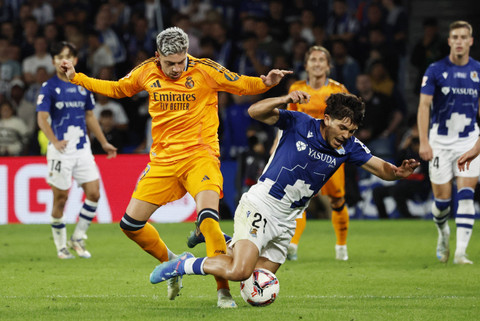 Real Madrid menang melawan Real Sociedad dengan skor 2-0 pada pertandingan La Liga di Reale Arena, San Sebastian, Spanyol, Sabtu (14/9/2024).