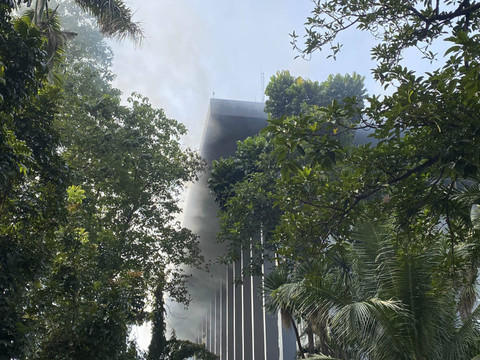 Petugas menyemprotkan air ke arah gedung yang terbakar di Gedung Badan Keamanan Laut (Bakamla) RI, Jalan Proklamasi, Pegangsaan, Menteng, Jakarta Pusat, Minggu (29/9/2024).Foto: Jamal Ramadhan/kumparanKebakaran yang diduga akibat korsleting listrik tersebut masih melakukan pemadaman yang telah mengerahkan 19 unit pemadam dengan 95 personel.Foto: Jamal Ramadhan/kumparanLaporan kebakaran diterima pemadam pukul 06.25 WIB, sementara operasi pemadaman dilakukan pukul 06.27 WIB. Foto: Jamal Ramadhan/kumparanFoto: Jamal Ramadhan/kumparanFoto: Jamal Ramadhan/kumparanFoto: Jamal Ramadhan/kumparanFoto: Jamal Ramadhan/kumparanFoto: Jamal Ramadhan/kumparanFoto: Abid Raihan/kumparanFoto: Abid Raihan/kumparan