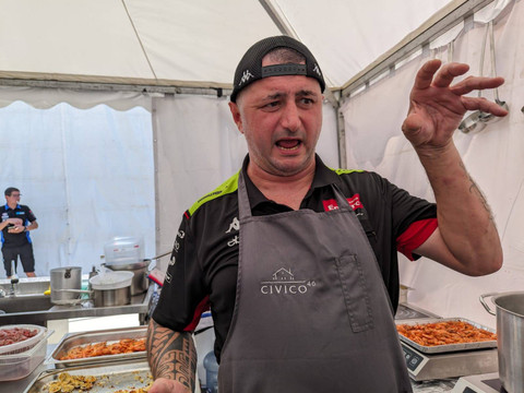 Michele Quarenghi saat berada di dapur Pertamina Enduro VR46 Racing Team di Sirkuit Mandalika, Nusa Tenggara Barat, Minggu (29/9/2024). Foto: Rizki Baiquni Pratama/kumparanSeorang koki asal Italia tersebut merupakan orang yang paling bertanggung jawab dalam memenuhi gizi pebalap VR46 Racing Team. Foto: Rizki Baiquni Pratama/kumparanPengalamannya sebagai chef selama 20 tahun tersebut membuatnya dipercaya oleh Valentino Rossi sebagai executive chef sejak 2023 lalu melalui restoran miliknya bernama Civico46. Foto: Rizki Baiquni Pratama/kumparanSelama MotoGP Mandalika, ia menggunakan sebagian bahan makanannya dari laut Lombok, salah satunya yaitu ikan, kerang dan udang. Foto: Rizki Baiquni Pratama/kumparan