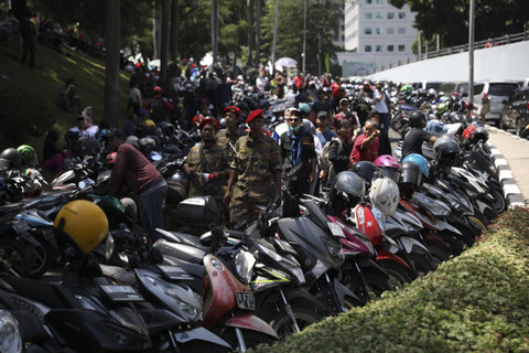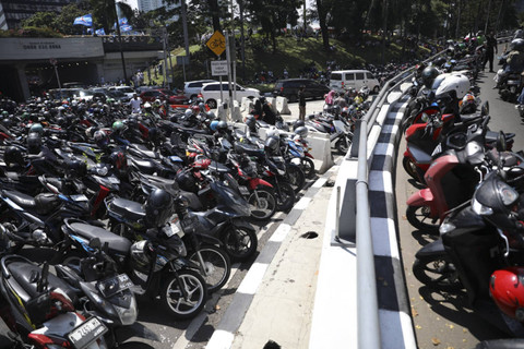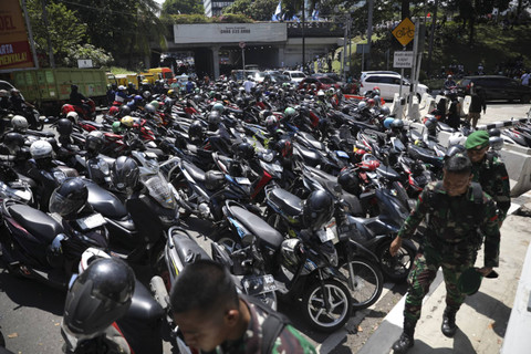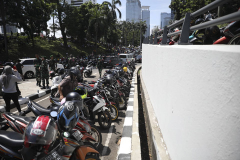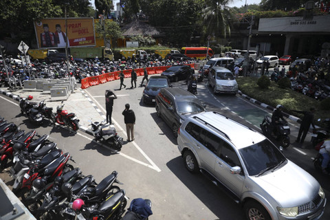 Parkiran dadakan tersebut dilakukan oleh masyarakat yang ingin menyambut Joko Widodo dan menyaksikan secara live proses pelantikan Presiden dan Wakil Presiden masa bakti 2024-2029 di pinggir jalan.