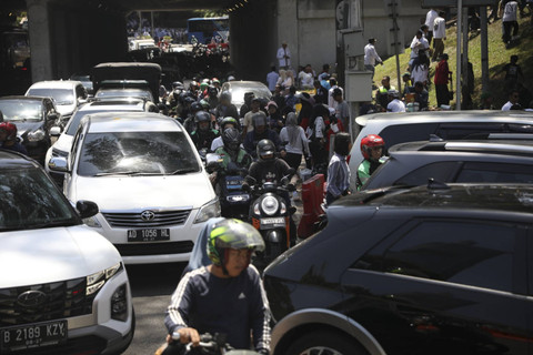 Penyempitan jalan sebabkan kemacetan akibat parkir kendaraan di depan gedung Wisma BNI 46, Jl. Galunggung, Jakarta, Minggu (20/10/2024). Foto: Aditia Noviansyah/kumparan