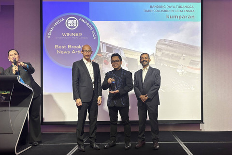 kumparan kembali menerima penghargaan internasional Asian Media Awards 2024 yang diselenggarakan oleh WAN-IFRA (World Association of News Publishers) di Mount Faber Peak Ballroom, Singapura, Rabu (6/11/2024). Foto: Dok. kumparanPada ajang tersebut kumparan mendominasi kemenangan. Penghargaan tersebut diterima langsung oleh CEO kumparan Hugo Diba. Foto: Dok. kumparankumparan berhasil membawa pulang empat penghargaan untuk empat kategori, yakni Best in News Photography untuk karya Tatapan Tersangka Syahrul Yasin Limpo, Best in Community Service untuk inisiatif kumparan Baliho Reborn, Best Revenue Diversification Project untuk program kumparan Hangout, dan Best in Breaking News Article untuk pemberitaan kumparan Breaking News: Kereta Api Bandung Raya Tabrakan dengan Kereta Api Turangga di Cicalengka. Foto: Dok. kumparanFoto: Dok. kumparanFoto: Dok. kumparan