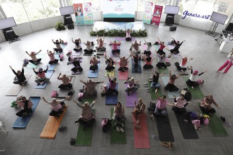 Selain talkshow, ada juga sesi yoga bersama yoga coach yang juga founder Nujuh Bulan Studio, Tia Pratignyo.