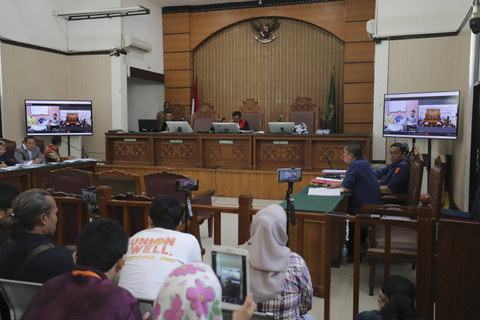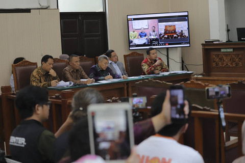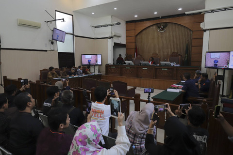 Dalam sidang tersebut, Tom Lembong dihadirkan melalui daring via Zoom dari ruangan Kejaksaan Negeri Jakarta Selatan. Terlihat istri mantan Menteri Perdagangan itu, Franciska Wihardja, menghadiri sidang secara langsung.