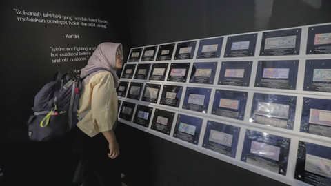Pengunjung mengamati koleksi dalam pameran 'Herstory' di Museum Bank Indonesia (BI), Kota Tua, Jakarta, Rabu (11/12/2024). Foto: Jamal Ramadhan/kumparan