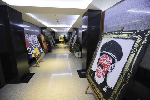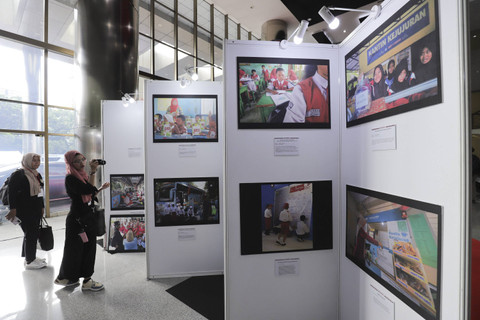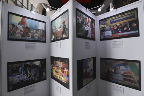 Selain pameran barang rampasan yang dilelang, KPK juga menggelar pameran foto dari peserta lomba foto dan pameran lomba lukisan dalam rangka Hakordia 2024. Terlihat pengunjung mengamati foto-foto yang dipamerkan.