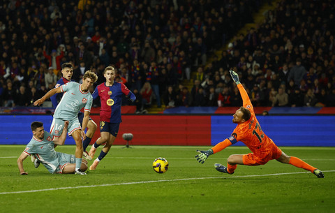 Barcelona kalah saat melawan Atletico Madrid pada pertandingan Liga Spanyol di Estadi Olimpic Lluis Companys, Barcelona, Spanyol, Minggu (22/12/2024) dini hari WIB. Foto: Albert Gea/REUTERSSelama pertandingan berlangsung, Barcelona bermain dominan dan mampu menciptakan gol pertama di menit 30 oleh Pedri. Namun permainan efektif dari Atletico Madrid mampu membalikkan keadaan dengan gol di menit 60 oleh Rodrigo de Paul di menit 60 dan Alexander Sorloth di menit 90+6. Foto: Albert Gea/REUTERSAtas hasil pertandingan tersebut, Barcelona harus merosot ke peringkat dua dengan raihan 38 poin, sedangkan Atletico Madrid menempati puncak klasemen dengan 41 poin. Foto: Albert Gea/REUTERSFoto: Albert Gea/REUTERSFoto: Albert Gea/REUTERSFoto: Albert Gea/REUTERS