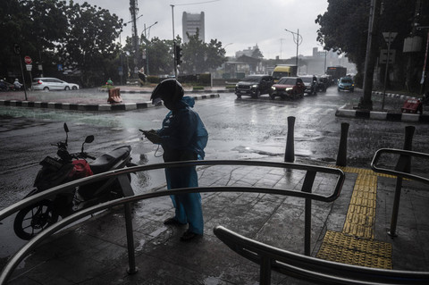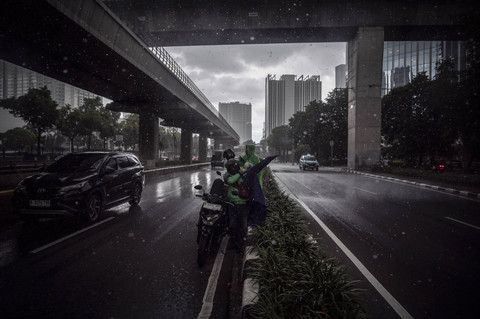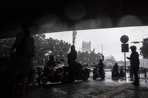 Pengendara sepeda motor memakai mantel saat hujan di kawasan Kuningan, Jakarta, Selasa (7/1/2024). Foto: Aprillio Akbar/ANTARA FOTOBMKG memprediksi hujan dengan intensitas sedang hingga sangat lebat, yang dapat disertai kilat atau petir dan angin kencang akan terjadi akhir-akhir ini. Foto: Aprillio Akbar/ANTARA FOTOHal tersebut diprediksi akan terjadi selama periode 3-9 Januari 2025 di sejumlah wilayah Tanah Air. Foto: Aprillio Akbar/ANTARA FOTOFoto: Aprillio Akbar/ANTARA FOTO