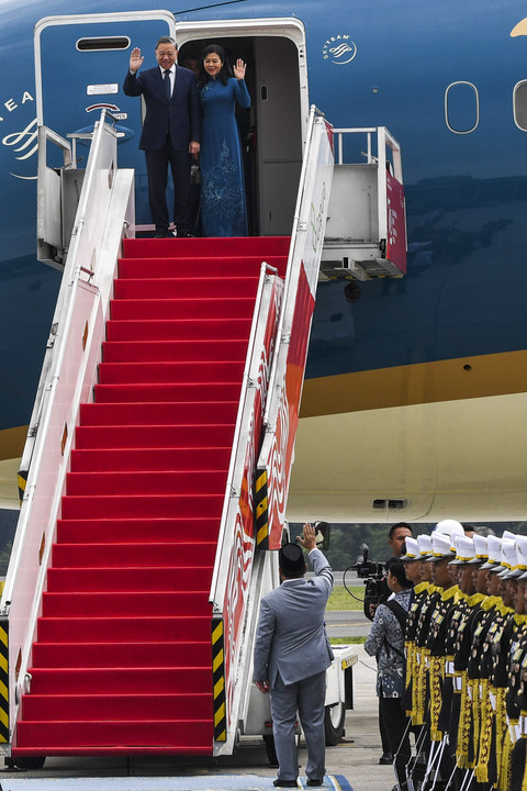 Prabowo Subianto melepas kepulangan Sekjen PKV To Lam setelah melakukan kunjungan kenegaraan yang menandai 70 tahun hubungan bilateral Indonesia dan Vietnam.