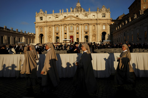 Para petugas, awak media, hingga biarawati mulai bersiap mengikuti misa arwah.