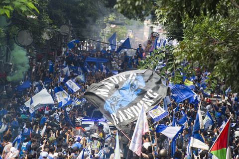 Tim Persib Bandung melakukan pawai dari Balai Kota Bandung hingga ke Gedung Sate yang diikuti ribuan warga untuk merayakan juara Liga 1.