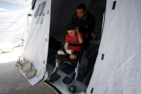 Ahmad Al-Ghalban, pesenam Palestina berusia 16 tahun, yang kehilangan kedua kakinya tidur di dalam tenda di Kota Gaza. Foto: Dawoud Abu Alkas/REUTERS