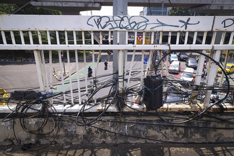 Selain itu, penumpukan kabel utilitas yang ada pada besi juga menambah kesan semrawut pada JPO serta membahayakan para penggunanya.