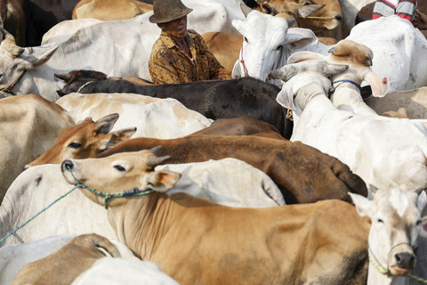 Tak hanya menjual sapi, para pedagang juga menjual hewan seperti kambing dan domba. Ini merupakan rutinitas umat Muslim menjelang Idul Adha yang ingin menjalankan ibadah kurban.