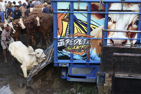 Pasar Hewan Jonggol di Kabupaten Bogor, Jawa Barat, ramai dikunjungi pembeli, Kamis (29/5). Foto: Ajeng Dinar Ulfiana/ReutersSepekan menjelang Hari Raya Idul Adha, pasar Hewan di Jonggol kian ramai oleh pedagang dan pembeli. Pasar hewan itu sendiri buka setiap hari Senin dan Kamis pukul 05.00 WIB dan tutup 12.00 WIB. Foto: Ajeng Dinar Ulfiana/ReutersTak hanya menjual sapi, para pedagang juga menjual hewan seperti kambing dan domba. Ini merupakan rutinitas umat Muslim menjelang Idul Adha yang ingin menjalankan ibadah kurban. Foto: Ajeng Dinar Ulfiana/ReutersFoto: Ajeng Dinar Ulfiana/Reuters