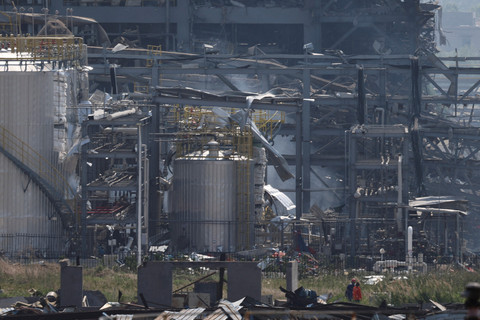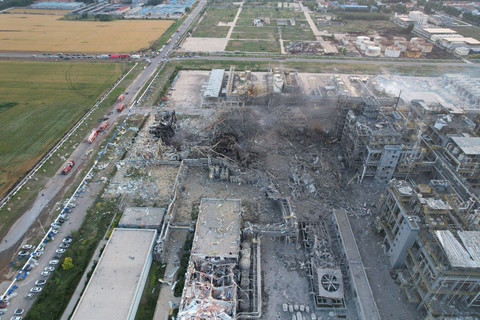 Kondisi usai ledakan pabrik kimia di Gaomi, Provinsi Shandong, China, Rabu (28/5/2025). Foto: Go Nakamura/REUTERS
