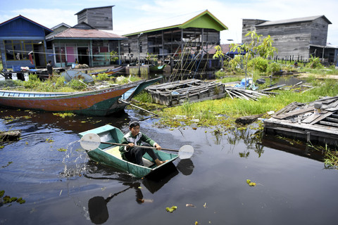 Seorang bocah mendayung melintasi Desa Muara Enggelam, Kecamatan Muara Wis, Kabupaten Kutai Kartanegara, Kalimantan Timur, Sabtu (17/5/2025). Foto: M Risyal Hidayat/ANTARA FOTODesa tanpa daratan yang berada di tengah Danau Melintang tersebut dihuni sekitar 747 jiwa. Foto: M Risyal Hidayat/ANTARA FOTOAdapun mata pencaharian mereka sebagai nelayan yang menggantungkan hidup pada hasil tangkapan ikan dari sekitar danau dan sebagian berkebun di ladang terapung atau membuat kerajinan tangan. Foto: M Risyal Hidayat/ANTARA FOTOFoto: M Risyal Hidayat/ANTARA FOTO