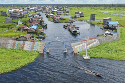 Foto udara suasana Desa Muara Enggelam di Kecamatan Muara Wis, Kabupaten Kutai Kartanegara, Kalimantan Timur, Sabtu (17/5/2025). Foto: M Risyal Hidayat/ANTARA FOTO