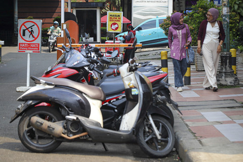 Parkir liar di kawasan Blok M, Jakarta Selatan, masih sering ditemukan walaupun sudah menggunakan sistem parkir bayar langsung di pintu masuk.