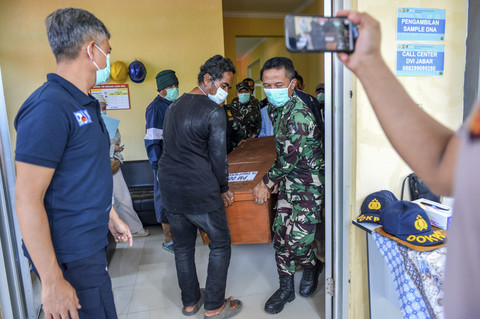 Petugas TNI, Polri bersama keluarga korban membawa peti jenazah korban ledakan pemusnahan amunisi untuk dimasukkan ke dalam mobil ambulans di RSUD Pameungpeuk, Kabupaten Garut, Jawa Barat, Selasa (13/5). Foto: Raisan Al Farisi/ANTARA FOTOTampak keluarga korban ledakan pemusnahan amunisi menangis saat menunggu pemulangan jenazah. Foto: Raisan Al Farisi/ANTARA FOTOKorban tewas ledakan amunisi kedaluwarsa yang terjadi di Kecamatan Pameungpeuk, Kabupaten Garut, pada Senin (12/5), berjumlah 13 orang, terdiri dari 4 anggota TNI AD dan 9 warga sipil. Foto: Raisan Al Farisi/ANTARA FOTOFoto: Raisan Al Farisi/ANTARA FOTO