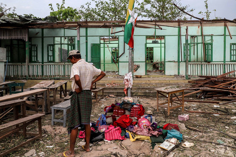 Serangan udara Junta Militer Myanmar menghancurkan sebuah sekolah, pada Senin (12/5). Serangan itu menewaskan 22 orang, 20 di antaranya anak-anak.
