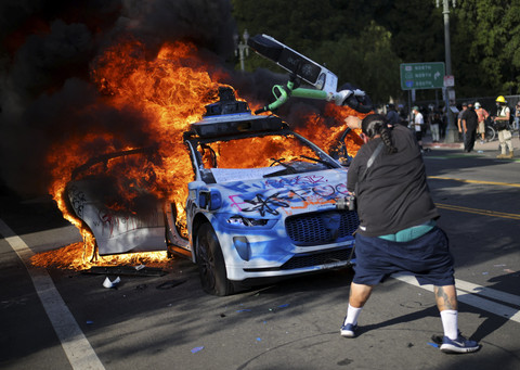 Berikut beberapa momen mobil Waymo yang dibakar saat bentrokan pecah terjadi antara massa aksi dengan aparat keamanan di Los Angeles.