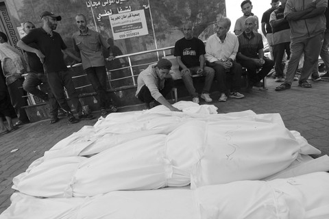 Warga Palestina berduka akibat serangan Israel itu. Tampak para keluarga korban menangis di hadapan jenazah.