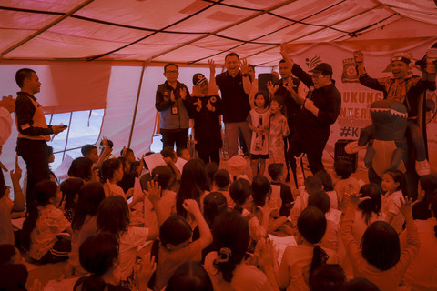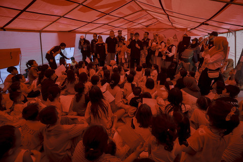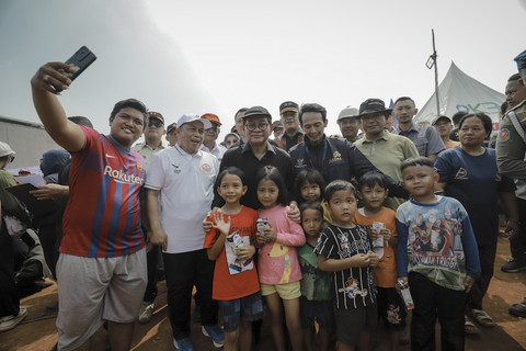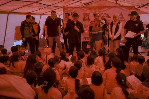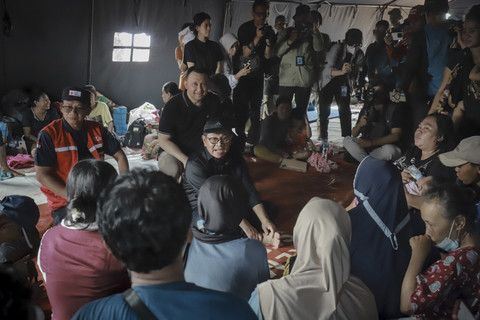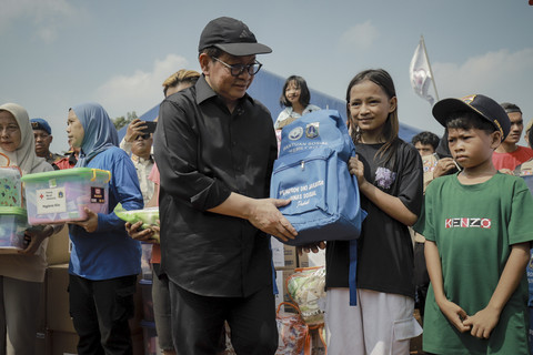 Dalam kunjungan tersebut, Pramono menyapa para warga yang terdampak dan menyempatkan diri berkunjung ke tenda anak-anak untuk menghibur mereka.