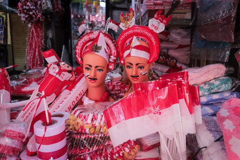 Umbul-umbul dan pernak-pernik lainnya dibanderol antara Rp 20 ribu hingga Rp 90 ribu, dengan motif dan corak khas merah putih