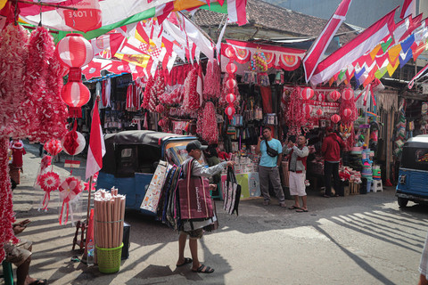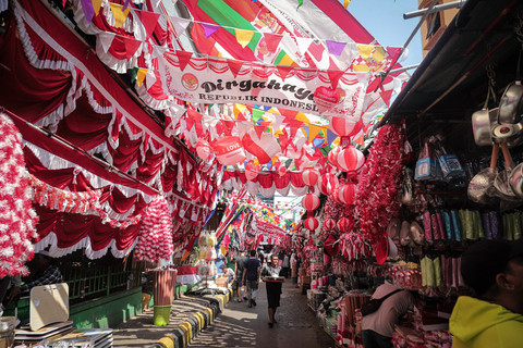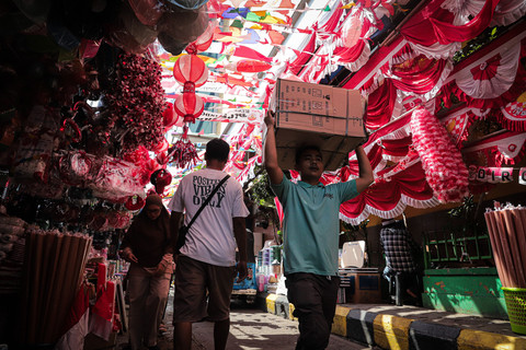 Pasar Jatinegara menjadi salah satu tempat favorit untuk berburu kebutuhan dekorasi jelang HUT RI. Selain menawarkan harga bersaing, keberadaan penjual musiman ini juga menghadirkan suasana yang meriah dan menarik perhatian warga.