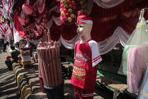 Menjelang peringatan Hari Ulang Tahun (HUT) ke-80 Republik Indonesia, pasar tradisional seperti Pasar Jatinegara, Jakarta, mulai diramaikan oleh pedagang musiman yang menjajakan berbagai pernak-pernik dan bendera Merah Putih.