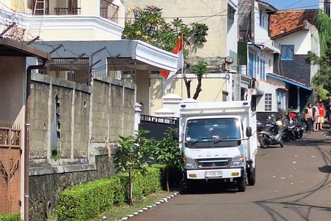 Beberapa truk mulai datang ke kediaman Sri Mulyani. Truk-truk tersebut juga membawa beberapa petugas yang membawa alat kebersihan seperti sapu dan pengki.