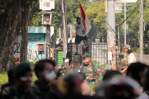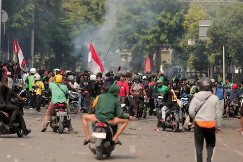 Massa mulai berkumpul di Mako Brimob Polda Metro Jaya, Kwitang, Jakarta, Sabtu pagi (30/8/2025). Foto: Iqbal Firdaus/kumparanPeserta aksi didominasi oleh ojek online (ojol) mengawali untuk memadati markas merah-hitam tersebut. Foto: Iqbal Firdaus/kumparanKini, sejumlah polisi memberanikan satuannya untuk berjaga di wilayahnya tersebut. Foto: Iqbal Firdaus/kumparanBukan dari kelompoknya saja, penjagaan juga melibatkan tantara angkatan darat. Foto: Iqbal Firdaus/kumparanGerombolan polisi sudah berjaga dengan tameng dan helm hitamnya di samping gerbang Mako Brimob. Foto: Iqbal Firdaus/kumparanBegitu juga massa, mayoritas dari mereka bersiap menggunakan helm dan seragam ojol berlogo platformnya masing-masing. Foto: Iqbal Firdaus/kumparanSebelum aksi terlalu ramai, beberapa warga sekitar tampak bersikeras meninggalkan area Mako Brimob sambil menutup sebagian wajahnya dengan baju dan lengan. Foto: Iqbal Firdaus/kumparanHal itu dikarenakan efek gas air mata masih melekat di kawasan tersebut, begitu juga terdapat titik asap yang membumbung di sana. Foto: Iqbal Firdaus/kumparanFoto: Iqbal Firdaus/kumparanFoto: Iqbal Firdaus/kumparanFoto: Iqbal Firdaus/kumparanFoto: Iqbal Firdaus/kumparan