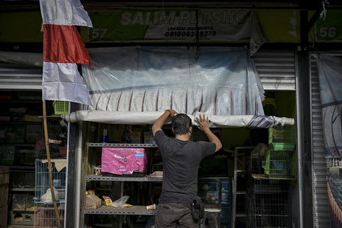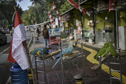 Para pedagang masih menjajakan hewan peliharaan di kios Pasar Barito, Jakarta Selatan, Minggu (3/8/2025), meski Pemerintah Provinsi DKI Jakarta menargetkan pengosongan kios pada hari ini. Aktivitas jual beli masih berlangsung di tengah upaya penertiban oleh pihak berwenang.