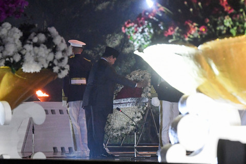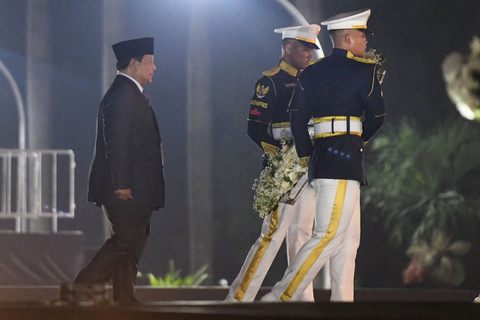 Presiden Prabowo Subianto memimpin upacara apel kehormatan dan renungan suci di Taman Makam Pahlawan (TMP) Kalibata, Jakarta Selatan, pada Minggu (17/8) dini hari.