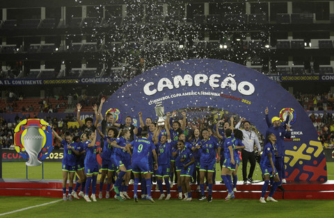 Timnas Wanita Brasil berhasil mempertahankan gelar juara Copa America Femenina usai menyingkirkan Timnas Wanita Kolombia di Estadio Rodrigo Paz Delgado, Quito, Ekuador, Minggu (3/8).
