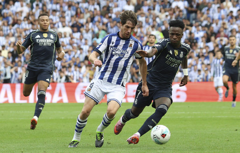 Real Sociedad kalah saat menjamu Real Madrid pada pertandingan Liga Spanyol di Reale Arena, San Sebastian, Spanyol, Sabtu (13/9/2025). Foto: PANKRA NIETO/REUTERSBermain di kandang lawan, Real Madrid unggul lebih dulu di menit 12 oleh Mbappe. Meski Huijsen sempat mendapat kartu merah di menit 32 namun Madrid mampu menambah gol di menit 44 melalui Arda Guler. Foto: PANKRA NIETO/REUTERSSedangkan Real Sociedad hanya mampu membalas satu gol melalui titik penalti di menit 56 yang di eksekusi oleh Mikel Oyarzabal. Foto: PANKRA NIETO/REUTERSSkor 1-2 bertahan hingga dua kali turun minum. Atas hasil pertandingan ini Real Madrid masih berada di puncak klasemen dengan raihan 12 poin, sedangkan Real Sociedad berada di posisi 17 dengan dua poin. Foto: PANKRA NIETO/REUTERS