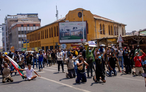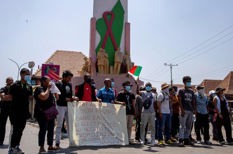 Selama unjuk rasa pada Kamis (25/9), massa memblokir jalan dan membawa poster unjuk rasa sambil berteriak "kami butuh air, kami butuh listrik!"