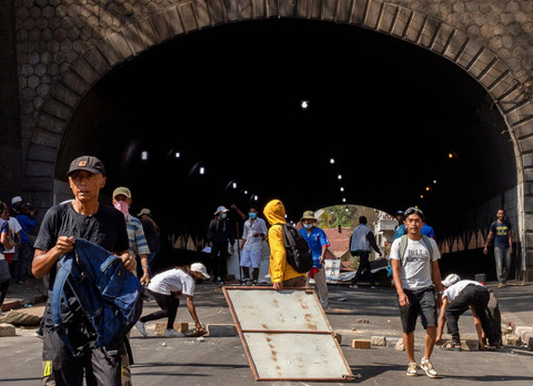Sejumlah polisi berusaha membubarkan massa yang memprotes seringnya pemadaman listrik dan kekurangan air di Antananarivo, Madagaskar, Jumat (26/9). Keadaan semakin ricuh sehingga aparat memberlakukan jam malam. Foto: Zo Andrianjafy/ReutersSelama unjuk rasa pada Kamis (25/9), massa memblokir jalan dan membawa poster unjuk rasa sambil berteriak "kami butuh air, kami butuh listrik!" Foto: Zo Andrianjafy/ReutersHuru-hara itu dimanfaatkan oleh para oknum untuk menjarah pusat perbelanjaan. Foto: Zo Andrianjafy/ReutersSelain itu, rumah dua anggota parlemen pun ikut menjadi sasaran pembakaran sehingga menimbulkan kepanikan bagi warga setempat. Foto: Zo Andrianjafy/ReutersMaka, untuk melindungi harta benda mereka, petugas keamanan mengadakan jam malam mulai pukul 19.00-05.00 waktu setempat. Foto: Zo Andrianjafy/ReutersFoto: Zo Andrianjafy/ReutersFoto: Zo Andrianjafy/ReutersFoto: Zo Andrianjafy/ReutersFoto: Zo Andrianjafy/ReutersFoto: Zo Andrianjafy/ReutersFoto: Zo Andrianjafy/Reuters