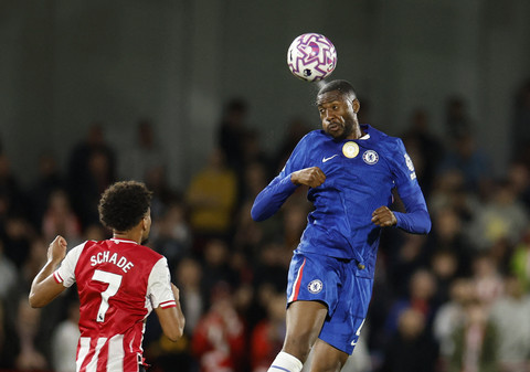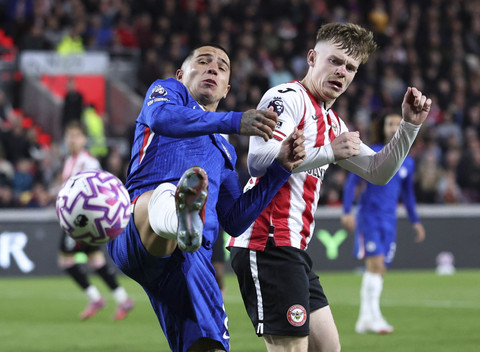 Igor Thiago dari Brentford beraksi bersama Trevoh Chalobah dari Chelsea pada pertandingan Liga Inggris antara Brentford vs Chelsea di Stadion Komunitas GTech, London, Inggris, Sabtu (13/9/2025). Foto: Peter Cziborra/REUTERS