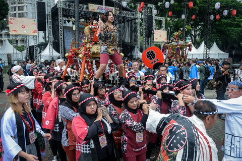 Sejumlah orang dengan pakaian bergaya tradisional Jepang mengikuti Parade Mikoshi saat Festival Jak-Japan Matsuri 2025 di kawasan Gelora Bung Karno, Jakarta, Sabtu (27/9/2025). Foto: Putra M. Akbar/ANTARA FOTO Festival kebudayaan Jepang yang menghadirkan beragam pertunjukan musik, budaya, kuliner hingga aktivitas interaktif tersebut berlangsung pada 27-28 September. Foto: Putra M. Akbar/ANTARA FOTO Jak-Japan Matsuri 2025 bertujuan untuk memperdalam pemahaman antara warga Jepang dan Indonesia. Foto: Putra M. Akbar/ANTARA FOTO Kegiatan ini pertama kali diselenggarakan pada tahun 2009 di Jakarta. Foto: Putra M. Akbar/ANTARA FOTO