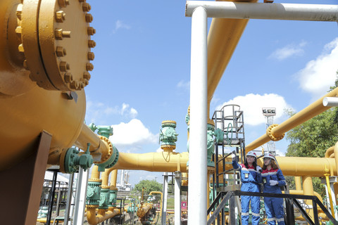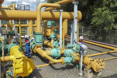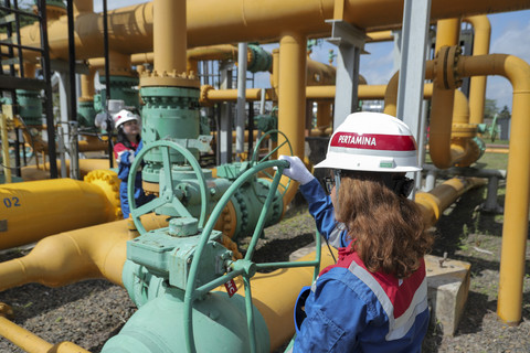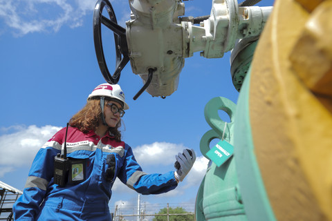 Pekerja melakukan pengecekan rutin pipa gas di simpang Y milik PT Pertamina Gas Operation South Sumatera Area (OSSA), Ogan Ilir (OI), Sumatera Selatan, Jumat (19/9/2025). Foto: Syawal Febrian Darisman/kumparan