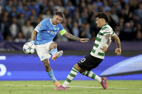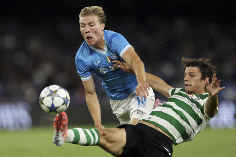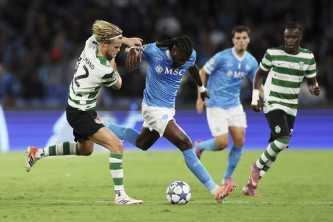 Napoli kalahkan Sporting CP 2-1 pada pertandingan Liga Champions di di Stadio Diego Armando Maradona, Naples, Italia, Rabu (1/10/2025).