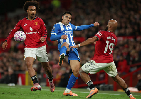 Manchester United meraih kemenangan saat menjamu Brighton & Hove Albion pada matchday 9 Liga Inggris 2025/26. Foto: Phil Noble/REUTERSBertanding di Old Trafford, Manchester, Inggris, Sabtu (25/10) malam WIB, MU menang 4-2. Foto: Phil Noble/REUTERSGol-gol kemenangan MU dicetak oleh Matheus Cunha di menit ke-24, Casemiro di menit ke-34, dan serta brace Bryan Mbeumo di menit ke-61 dan menit ke-90+7. Foto: Phil Noble/REUTERSSemetara dua gol balasan Brighton dicetak oleh Danny Welbeck di menit ke-74 dan Charalampos Kostoulas di menit ke-92+2. Foto: Phil Noble/REUTERSKemenengan ini menyodok Manchester United ke posisi ke-4 klasemen sementara dengan 16 poin. Foto: Phil Noble/REUTERSSementara Brighton tertahan di posisi ke-13 dengan 12 poin. Foto: Phil Noble/REUTERSFoto: Phil Noble/REUTERS