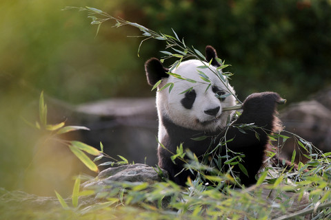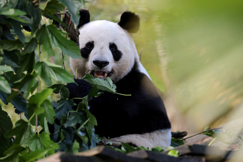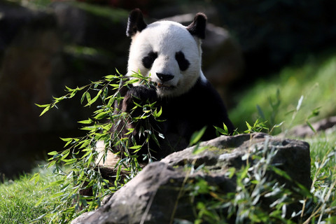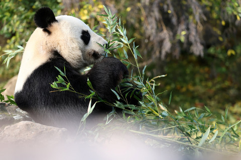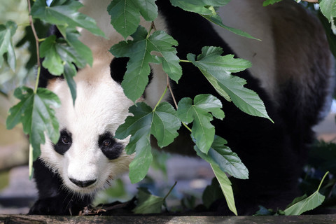 Panda jantan Yuan Zi, bermain di dalam kandangnya sebelum masa karantina dikirim kembali ke China di Kebun Binatang Beauval, Saint-Aignan, Prancis, Jumat (24/10/2025). Foto: Christian Hartmann/REUTERS