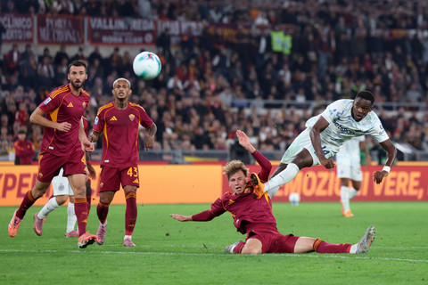 Pemain Inter Milan Ange-Yoan Bonny mencetak gol ke gawang AS Roma pada pertandingan Liga Italia di Stadio Olimpico, Roma, Italia, Sabtu (18/10/2025). Foto: Claudia Greco/REUTERS