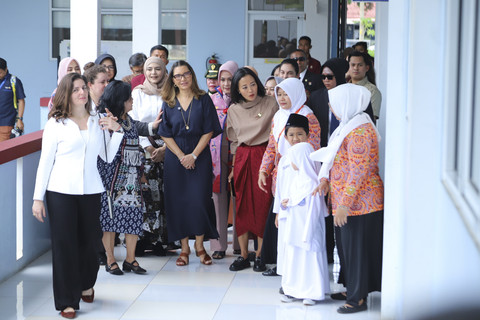 Kunjungan Janja kemudian berlanjut ke SD Angkasa 05, yang berlokasi tidak jauh dari dapur MBG, untuk meninjau langsung proses distribusi makanan bergizi gratis kepada para siswa.